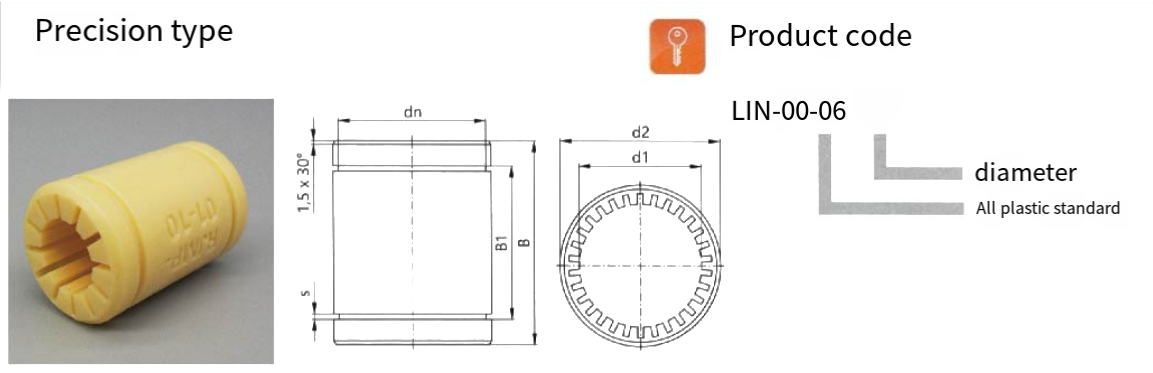 HZ-LIN Precision Bearing är konstruerat för högprecisionssammansättningar och har ultralåga dimensionstoleranser (±0,02 mm) och en slät hålfinish. Dess låga fuktabsorption (<0,5 %) säkerställer stabilitet i fuktkontrollerade miljöer som medicinsk utrustning, optisk utrustning eller robotik.