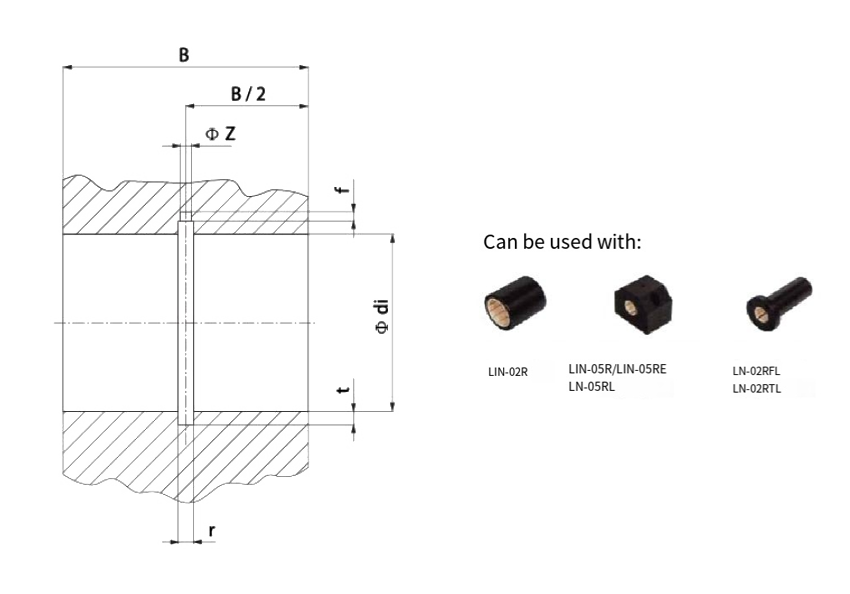 Material: Höghållfast teknisk plastmatris (t.ex. POM, PA66) med inbäddade fasta smörjmedel (PTFE, grafit).