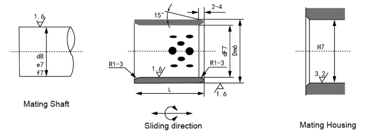 | JDB-3 | Materialet på insidan av produkterna i JDB-3-serien är lika bra som det i JDB-2-serien. så att de kunde fungera lika bra som JDB-2-serien. i ytterligare. De har andra fördelar som att spara materialkostnader, förbättra tryckhållfastheten och att de skulle kunna monteras genom att svetsa ihop bussningsytan med annan matris. De är lämpliga för delar som inte behöver oljesmörjning av entreprenadmaskiner, metallurgimaskiner och transportmaskiner. |