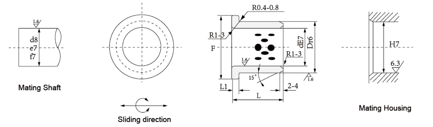 HZ-JFB flänsad grafit-kopparbussning integrerar inbäddad grafit för självsmörjning i dammiga, torra eller höga förhållanden. Dess flänsade design förhindrar axiell rörelse och förenklar installationen i pumpar, transportörer eller styrenheter för bilar. Koppar-grafitmatrisen minskar friktion och slitage, medan flänsen förbättrar lastfördelningen och inriktningsnoggrannheten.